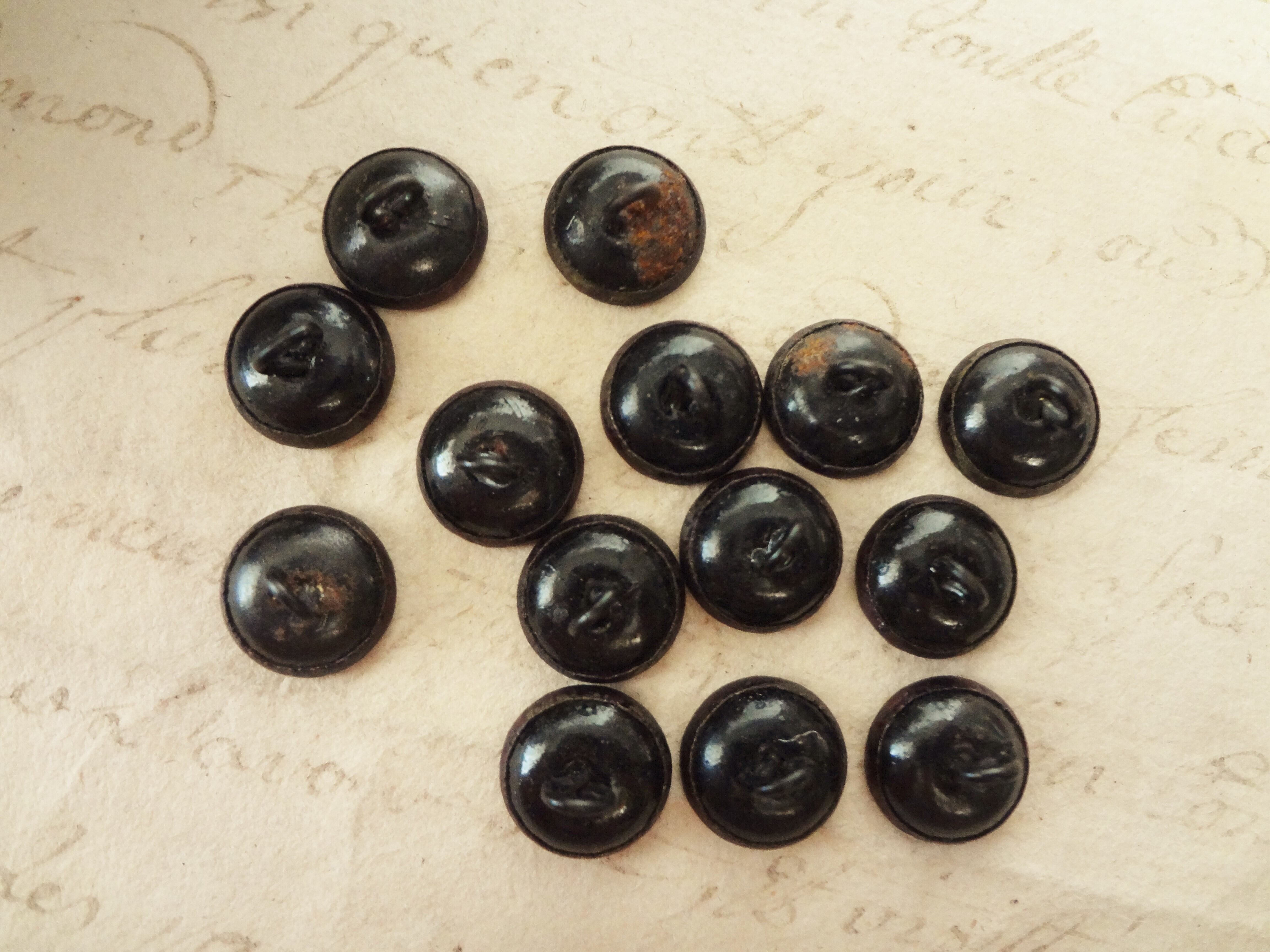 フランスから届きました、アンティークボタンの14個セットです。